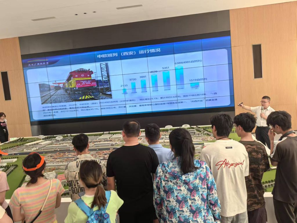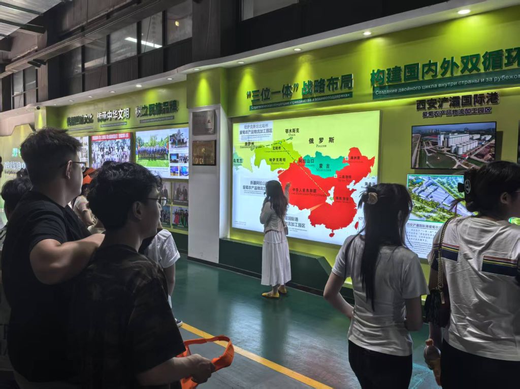 爱菊粮油的考察行程则聚焦粮食安全与国际贸易的深层关联。通过参观企业的跨境粮油贸易展厅,学生们了解到西安浐灞国际港如何通过中欧班列构建“中亚——中国”粮食供应链,仅2024年对中亚五国进出口额就增长48.1%,为保障国家粮食安全贡献“陆港力量”。
