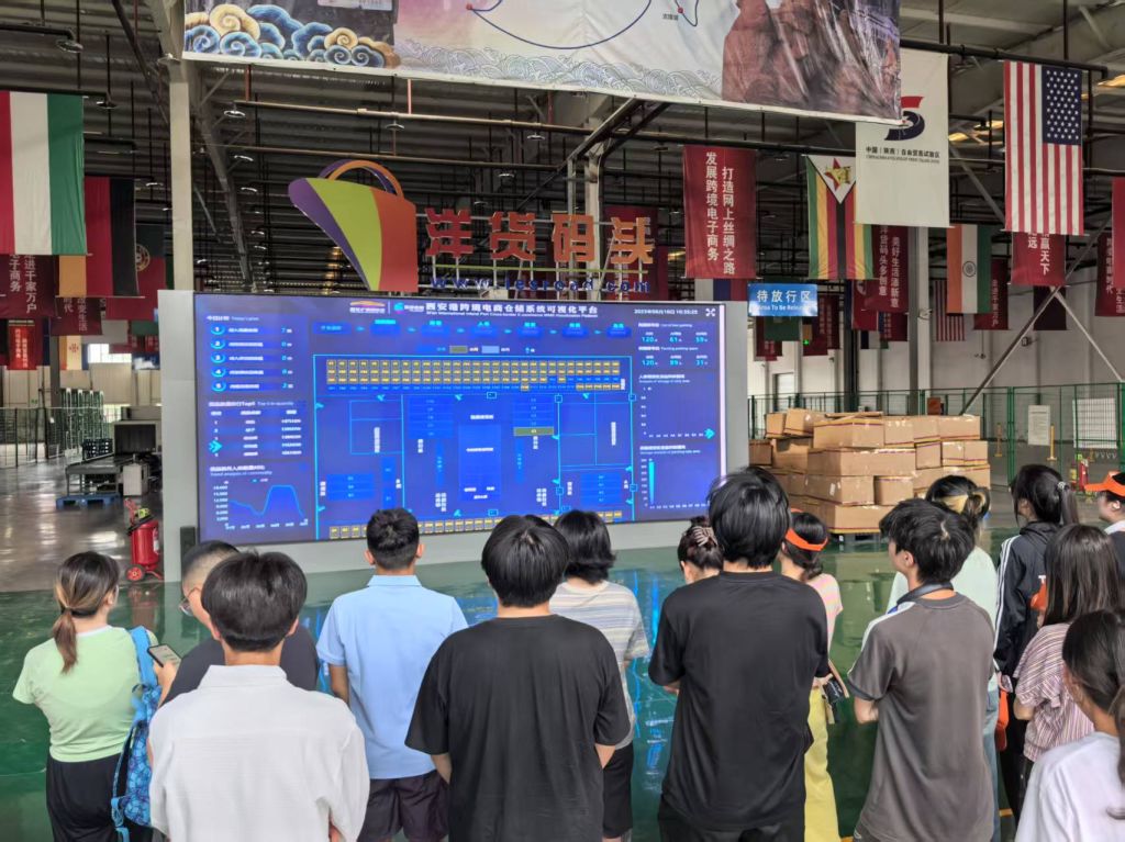 在空港综合保税区通关服务中心,学生们近距离观察跨境贸易全流程,从报关、查验到放行的智能化操作,深刻体会到海关监管与国际贸易便利化的协同机制。随后,京东集团空港跨境电商西北交易中心的沉浸式体验,让学生们接触到跨境电商的全链条运营模式 —— 从智能仓储、物流配送至数字化营销,特别是可视化平台对供应链效率的提升,生动诠释了数字贸易的技术赋能。
