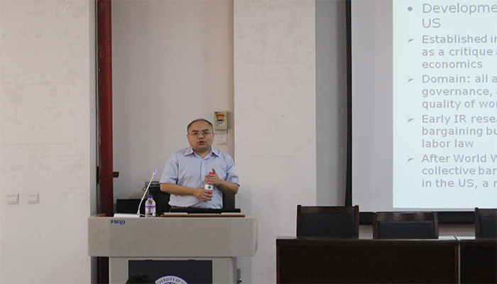 刘明巍教授首先结合劳动关系研究的发展脉络和当前共享经济发展等现实背景,介绍了劳动关系研究的前沿理论及问题,为学院师生提供了该领域研究值得进一步探索的热点及重要课题。然后,结合自身多年的编辑工作经验,刘明巍教授从选题、写作、投稿等方面深入浅出地介绍了国际期刊发表过程中的技巧和注意事项。讲座结束后,刘明巍教授和学院师生就相关研究和论文发表过程中存在的困惑和问题进行了深入交流和互动,学院师生受益良多、备受启发。