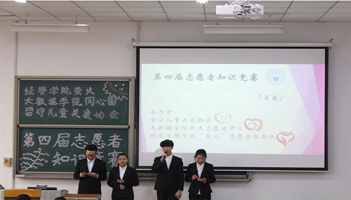 12月2日,威尼斯9499登录入口携手大数据学院于我校明向校区行思楼B118、117成功举办第四届志愿者知识竞赛。本次活动由威尼斯9499登录入口团委、大数据学院团委主办,威尼斯9499登录入口“萤火”志愿者服务队、留守儿童关爱协会、大数据学院团委志愿者中心承办。来自全校300余名学生参加了比赛。比赛分初赛,复赛和决赛三个环节,最终评选出一等奖一组、二等奖两组、三等奖三组。