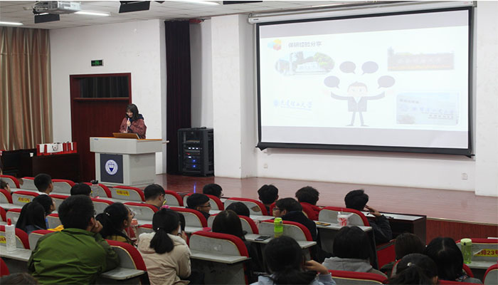 国贸1502班王蕊就专业背景、竞赛经历与社会实践、保研经历三方面内容向大家进行了经验分享。她根据自身经历勉励大家,学习中态度决定高度,要多参加实践活动与竞赛,提高自己的综合能力。