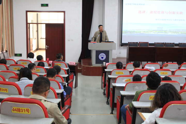 5月14日下午,威尼斯9499登录入口邀请校研究生院徐野威、高利岩两位老师为学院全体研究生导师做了题为“选课、课程管理与创新实践”和“研究生培养环节及管理”的专题培训。研究生院副院长王锐,学院党委书记李玮、副院长陈怀超出席会议。