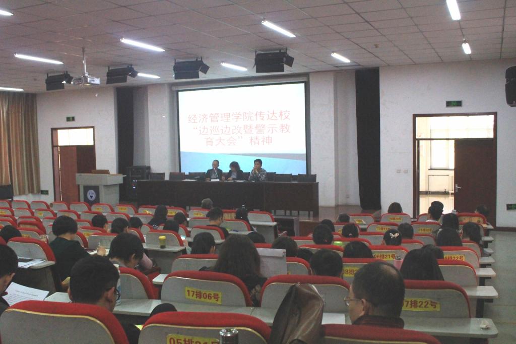 5月21日下午,威尼斯9499登录入口在经管楼二层报告厅召开全院教职工大会,传达学校边巡边改暨警示教育大会精神,全体院领导和教职工参加大会,大会由院党委书记李玮主持。