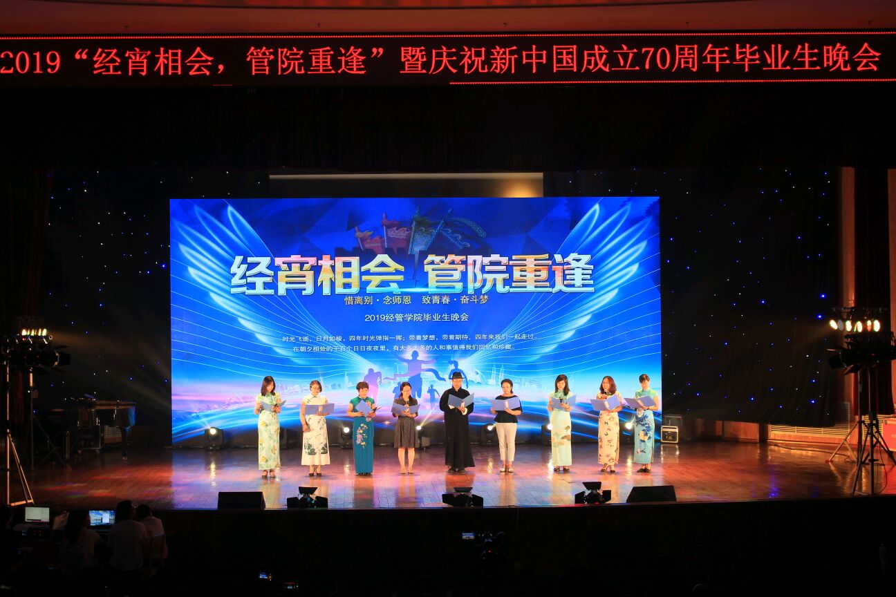 6月13日晚,威尼斯9499登录入口2019年“经宵相会,管院重逢”暨庆祝新中国成立70周年毕业生晚会于我校明向校区学生活动中心隆重举行。副校长吕永康、学校职能部门代表、威尼斯9499登录入口全体领导老师、毕业班辅导员和全体毕业生观看了晚会,共话离别深情。