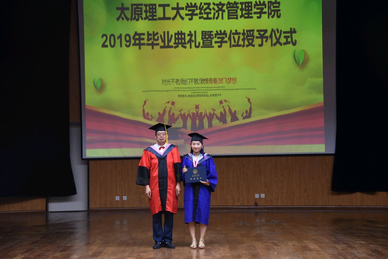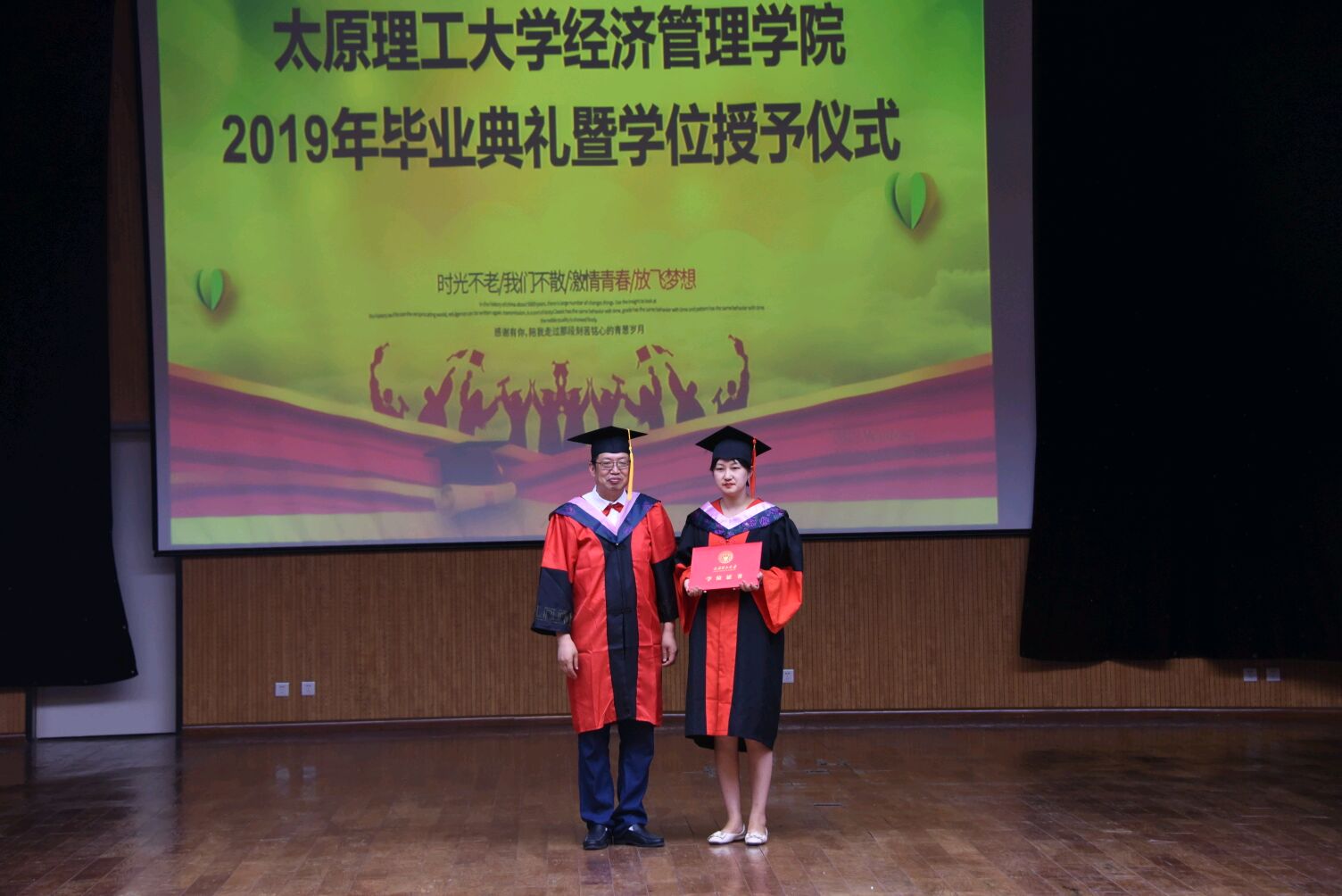 副院长陈怀超宣读了2019届毕业生毕业及学位授予情况,党委副书记杨振东宣布了对2019届优秀毕业生的表彰决定,学院领导向受表彰的优秀毕业生颁发了荣誉证书。优秀毕业生代表梁鹏同学和教师代表王聪老师先后发言。
