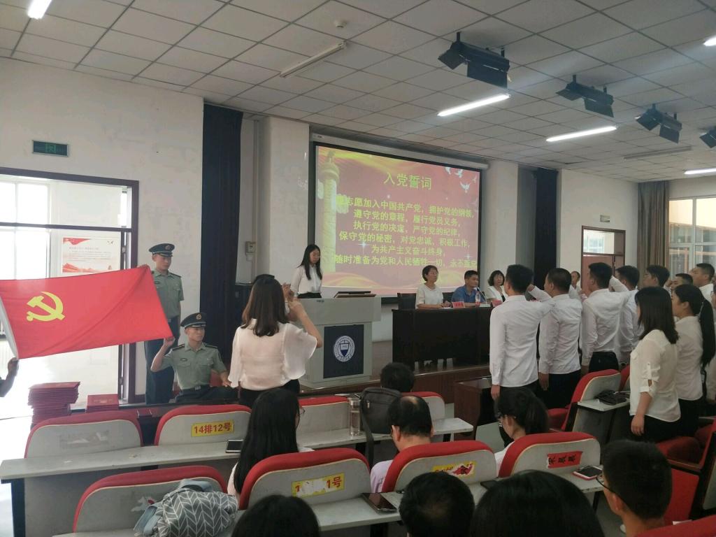 大会在庄严的国歌声中拉开帷幕。首先进行了入党宣誓仪式,全体新发展党员在鲜红的党旗前庄严宣誓,为共产主义奋斗终身,肩负起作为一名合格共产党员的责任和使命。