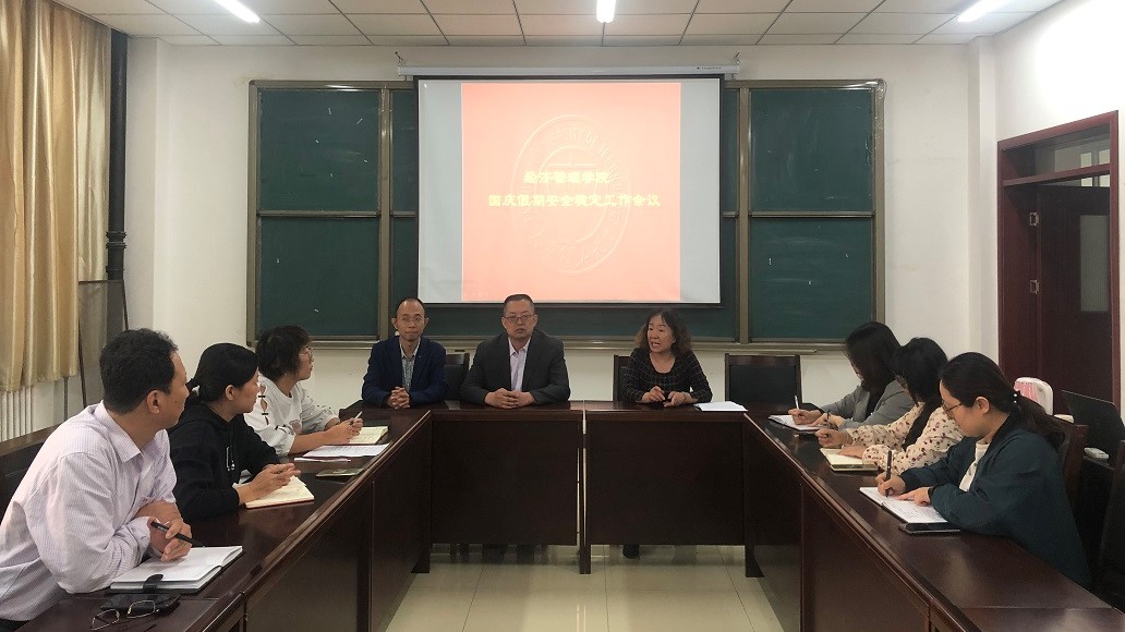 9月30日上午,威尼斯9499登录入口在我校明向校区经管楼226会议室召开国庆假期安全稳定工作会议。院党委书记李玮、院长栗继祖、副院长陈怀超、院学工办主任梁泽莹、团委书记郝晓飞、全体辅导员出席会议。会议由李玮主持。