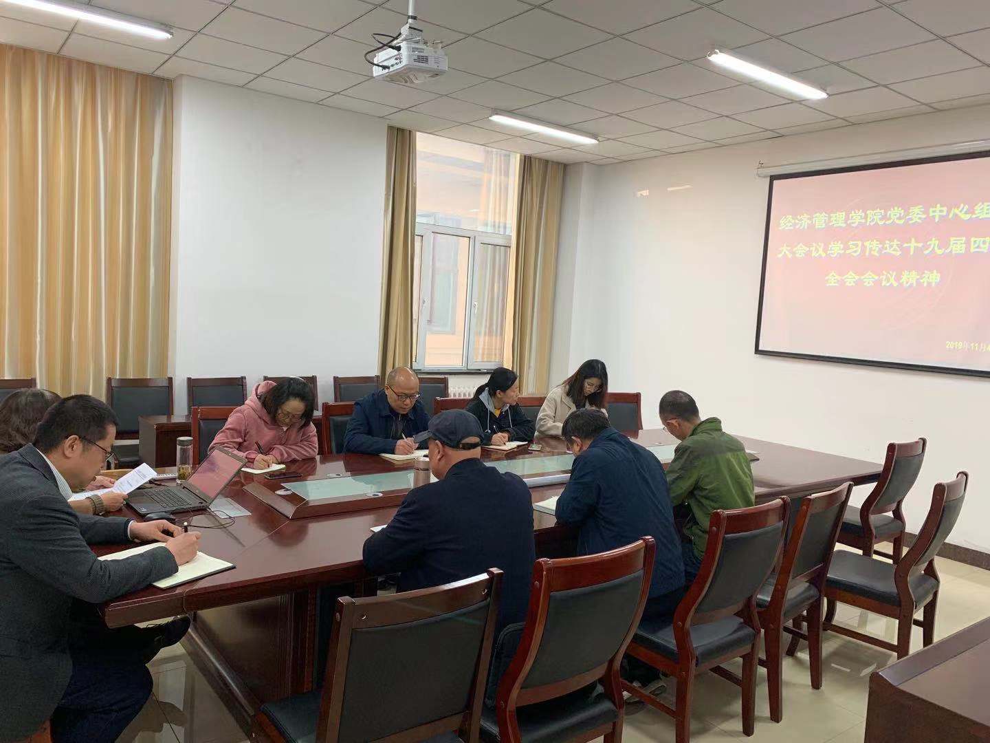 11月4日上午,威尼斯9499登录入口召开党委中心组扩大会议,传达学习十九届四中全会精神,学院全体院领导、三办主任、团委书记,组织员罗社管、郭苗出席会议,会议由院党委书记李玮主持。