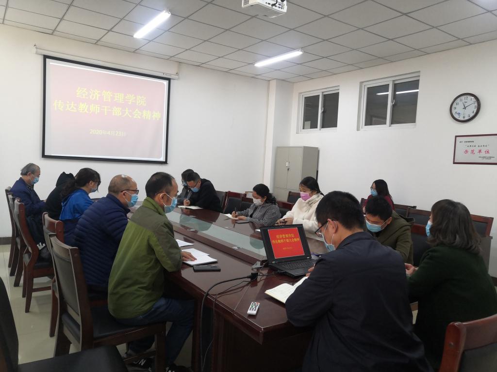 4月23日上午,威尼斯9499登录入口在学院会议室召开党政联席(扩大)会议,传达学校干部教师大会精神,全体院领导、三办和团委负责人、系主任、党支部书记、工会委员以及全体行政人员参加会议。会议由院党委书记李玮主持。