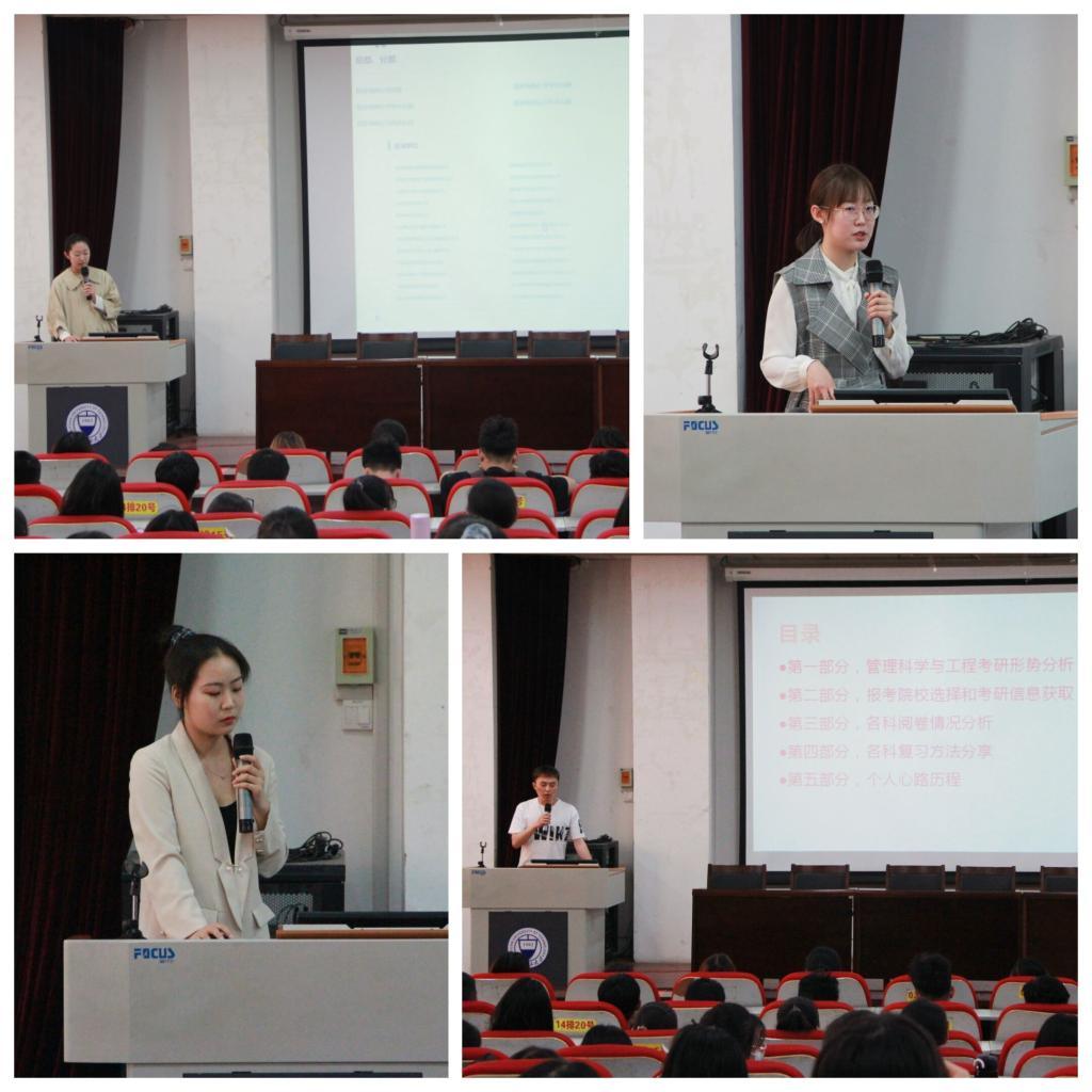 杨振东在主持仪式时为学生们分析了学院当前考研、就业的形势以及面临的困难,勉励大家早动手、早准备,争取未来成功上岸。