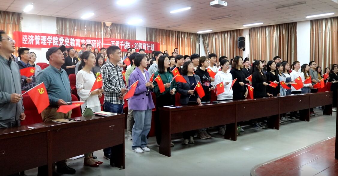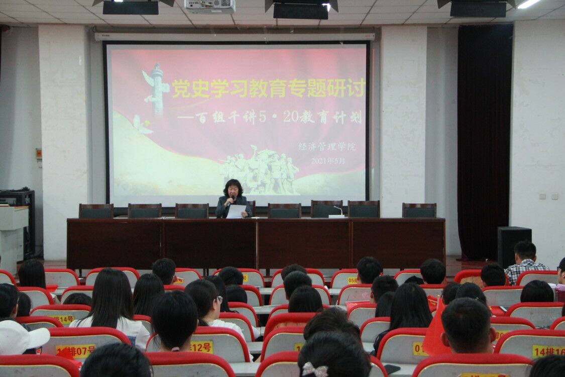 5月11日下午,威尼斯9499登录入口党委在学院二层报告厅组织开展了以“百组千讲5•20教育计划”为主题的党史学习教育第四次集体学习研讨,院党委书记李玮主持。