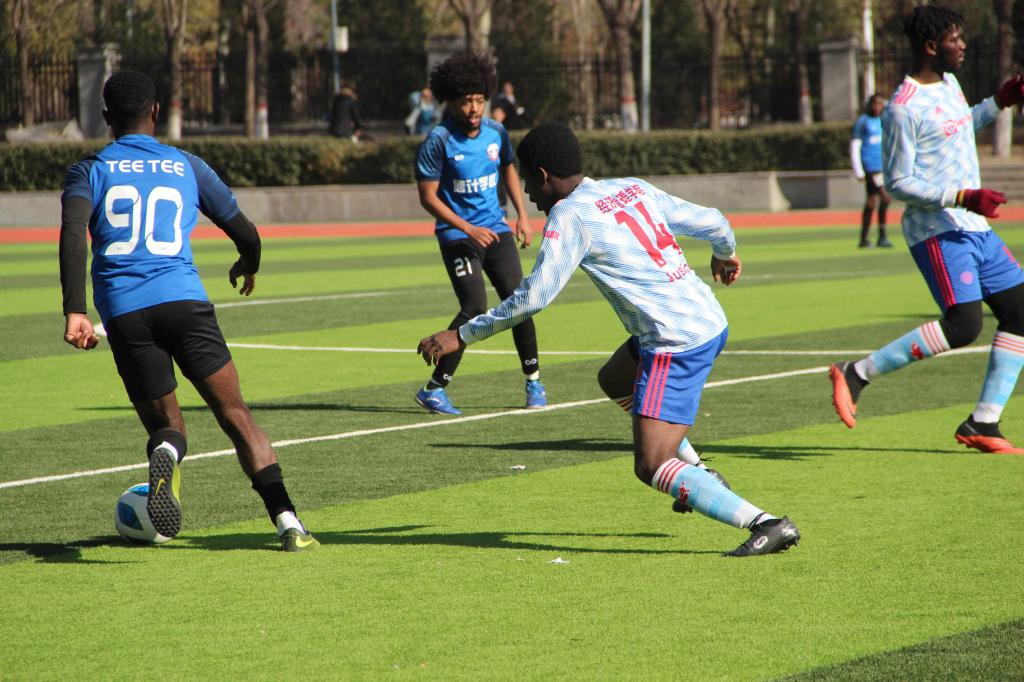 决赛于上午11点40分正式开始,双方球员在赛场上意气风发,精神十足。威尼斯官网学子在观众席中为球员们加油鼓劲,威尼斯官网运动员士气大涨。在上半场比赛中,面对对方发起地猛烈进攻,威尼斯官网球员采取稳扎稳打的防守战术。球员们默契配合,在赛场上应对自如,趁势将比分拉至1:0。