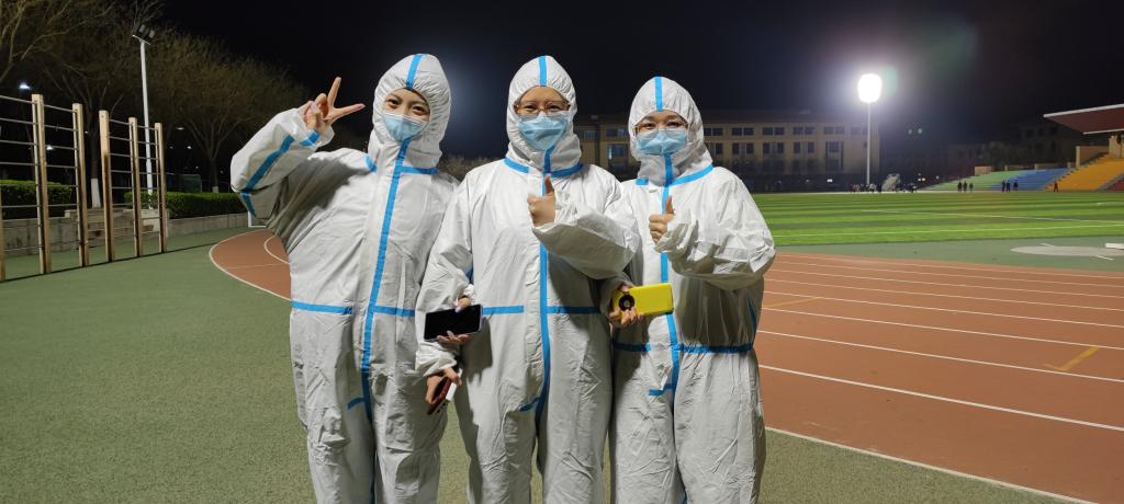 除了完成学院的工作外,郝晓飞、张志卿、张宁、靳杰等多名教工主动报名加入了学校的教工志愿者队伍,积极投身核酸检测志愿服务等工作,他们穿起“大白”,核验信息、维持秩序、检点数据......一次数小时工作下来,往往已是汗如雨下,身心俱疲,他们却始终无怨无悔、微笑以对。尤其是学工办副主任张志卿老师,六次全员核酸一次不落,“干就完了”成为她最响亮的口号和宣言。