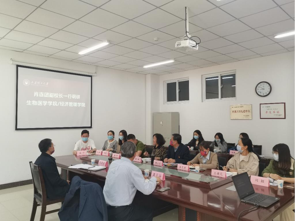 4月25日下午,校党委常委、副校长肖连团来到明向校区威尼斯9499登录入口226会议室开展调研指导,教务处冀巨海副处长陪同调研。学院全体院领导、系主任、三办主任和辅导员参加了座谈。座谈采用线上和线下相结合的方式进行。会议由李玮书记主持,栗继祖院长对学院整体情况进行了汇报。