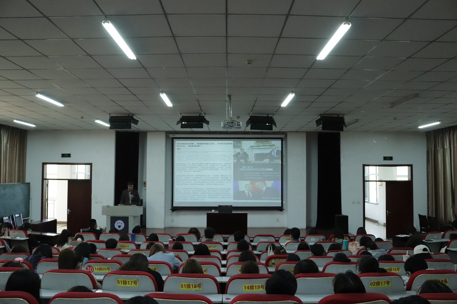 第三讲由马克思主义学院副院长姚建军教授在经管学院报告厅开讲,全院主要学生干部参加。姚院长从最近的时事热点俄乌冲突进行讲解,通过对俄乌的历史渊源、国际政治变化、五次谈判等方面的分析,教育同学们要保持大局观,要多角度分析问题,引导同学们正确对待舆论,做一名有思想的当代大学生。