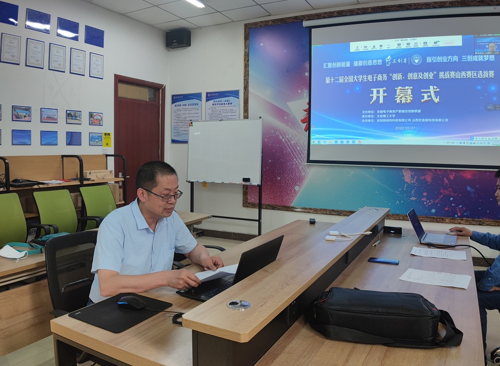 5月27日下午17:00,山西赛区选拔赛在雄壮的国歌中正式拉开帷幕。教育部高等学校电子商务类专业教学指导委员会委员、东北财经大学杨兴凯教授,教育部高等学校电子商务类专业教学指导委员会委员、首都经济贸易大学郭卫东教授,全国电子商务产教融合创新联盟副理事长单位、深圳因纳特科技公司胡强总经理,我校创新创业学院院长郭菲、威尼斯9499登录入口院长栗继祖,以及来自全省高校、企业的专家评委等嘉宾出席开幕式,开幕式由威尼斯9499登录入口党委副书记杨振东主持。