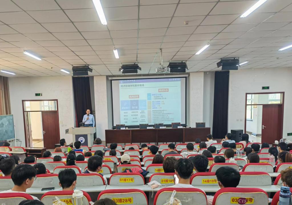 院长栗继祖代表学院对2021级本科生“回家”表示热烈欢迎,他对学院的机构设置、师资队伍、专业设置、学科建设、科学研究等基本情况作了详细介绍,总结了近年来学院取得的标志性成果,展望了“十四五”期间学院的建设规划和目标任务,帮助同学们了解学院的历史、现状和发展前景,鼓励同学们更有信心在学院高质量的师资水平和教研能力的帮助下得到全面发展,建立起师生互相成就的高质量可持续发展的人才培养生态,共同营造获得感、提升感、幸福感满满的经管“大家庭”。