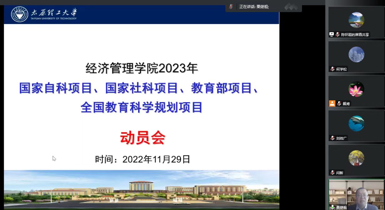 院长栗继祖结合党的二十大精神提出要求,希望全体教师勇担高校使命,通过积极申报国家级项目,培育壮大高水平科研队伍。院党委书记闫新号召全体教师踊跃申报,积极为我校的双一流建设贡献智慧与力量。