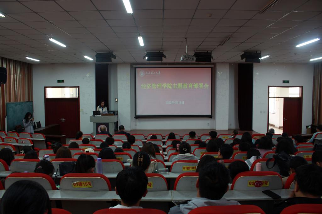 4月18日下午2点,威尼斯9499登录入口在学院报告厅召开主题教育部署会,学院党政领导出席会议,全体教师、学生党员代表参加本次会议。