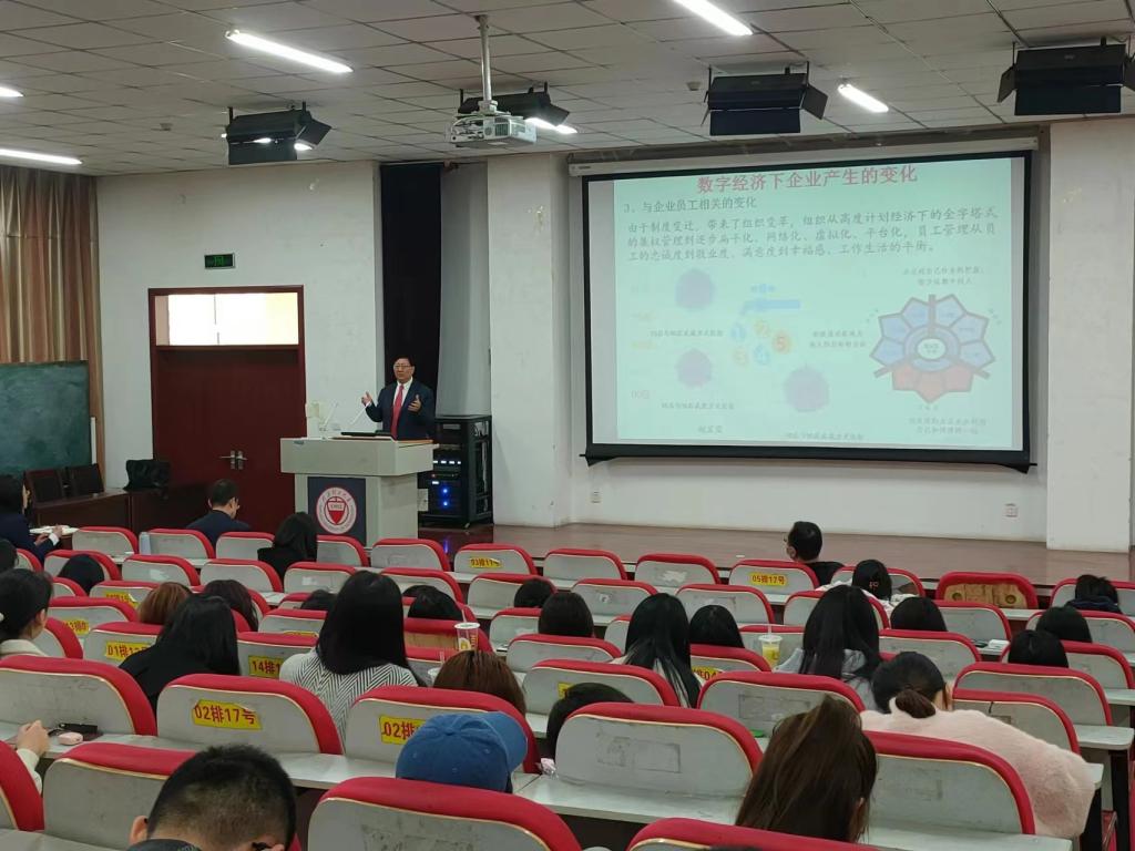4月28日上午,南京大学赵曙明教授应邀前来威尼斯9499登录入口进行学术交流,并作了题为“数字经济时代:人力资源管理的转型与发展”的学术报告。报告由威尼斯9499登录入口党委书记闫新主持,院长栗继祖和部分师生聆听了本次报告。