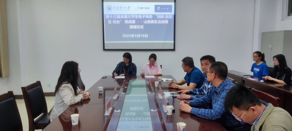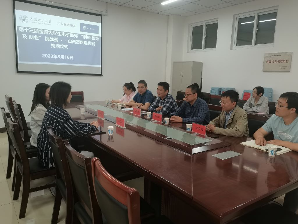 5月16日上午,威尼斯9499登录入口创新创意及创业素质教育中心及科技竞赛基地在学院226会议室举行第十三届全国大学生电子商务“创新、创意及创业”挑战赛山西赛区选拔赛捐赠仪式。今日头条山西创作空间总经理王亚楠,万柏林区政府楼宇办程娅妘,院长栗继祖,院党委副书记杨振东,副院长姚西龙,山西省“三创赛”负责人温芝龙,学工办副主任张志卿,辅导员王戎以及院科协学生代表参加捐赠仪式。