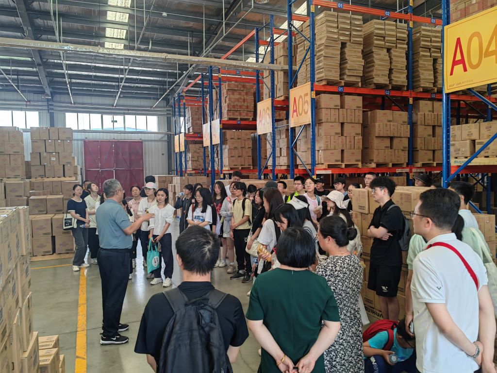 上午,经管学院师生在李秀文的带领下参观了穗华公共仓储库房、苏泊尔山西仓配中心、袋鼠先生打包车间、老鸿运物流太原分拣中心、王族保罗山西仓配中心以及穗华仓卖馆等,初步了解了家电、食品、酒类、水果、化妆品、服饰等不同类型供应链的物流仓储运作方式。