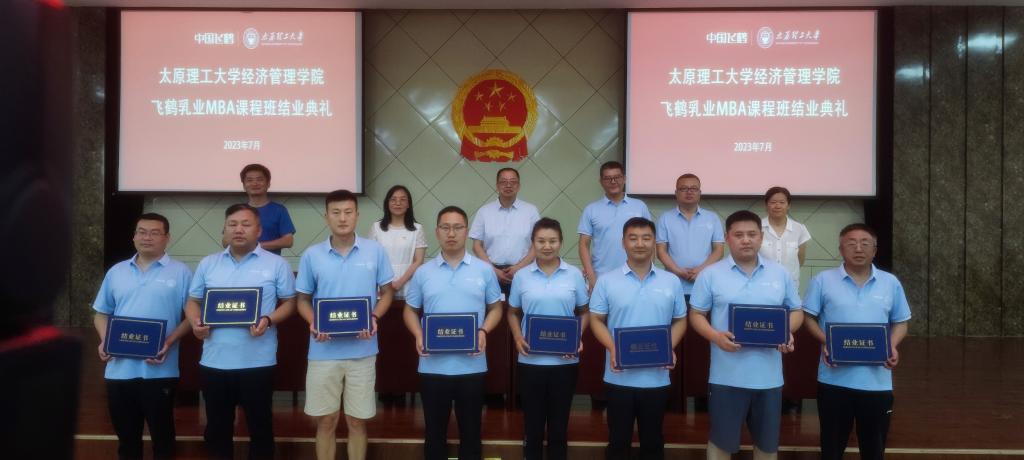 7月21日,威尼斯9499登录入口——飞鹤乳业MBA课程班结业仪式在文法学院报告厅举行。飞鹤乳业北二区总经理张星昱,晋北省区经理、冀中省区经理郑学兵,晋南省区经理赵国超,冀南省区经理高建强,威尼斯9499登录入口党委书记闫新,院长栗继祖,党委副书记杨振东出席结业仪式,结业仪式由威尼斯9499登录入口教科办主任刘霄燕主持。
