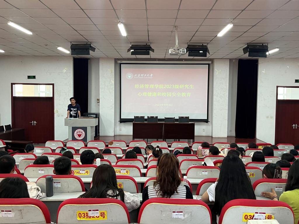 栗继祖围绕校史院情进行了爱校荣校教育,向新生介绍了学校、学院的历史沿革、发展成就、社会贡献、杰出校友、学校学院高质量发展目标等,增强研究生的认同感、归属感和集体荣誉感,激发研究生的学习动力与科研积极性。