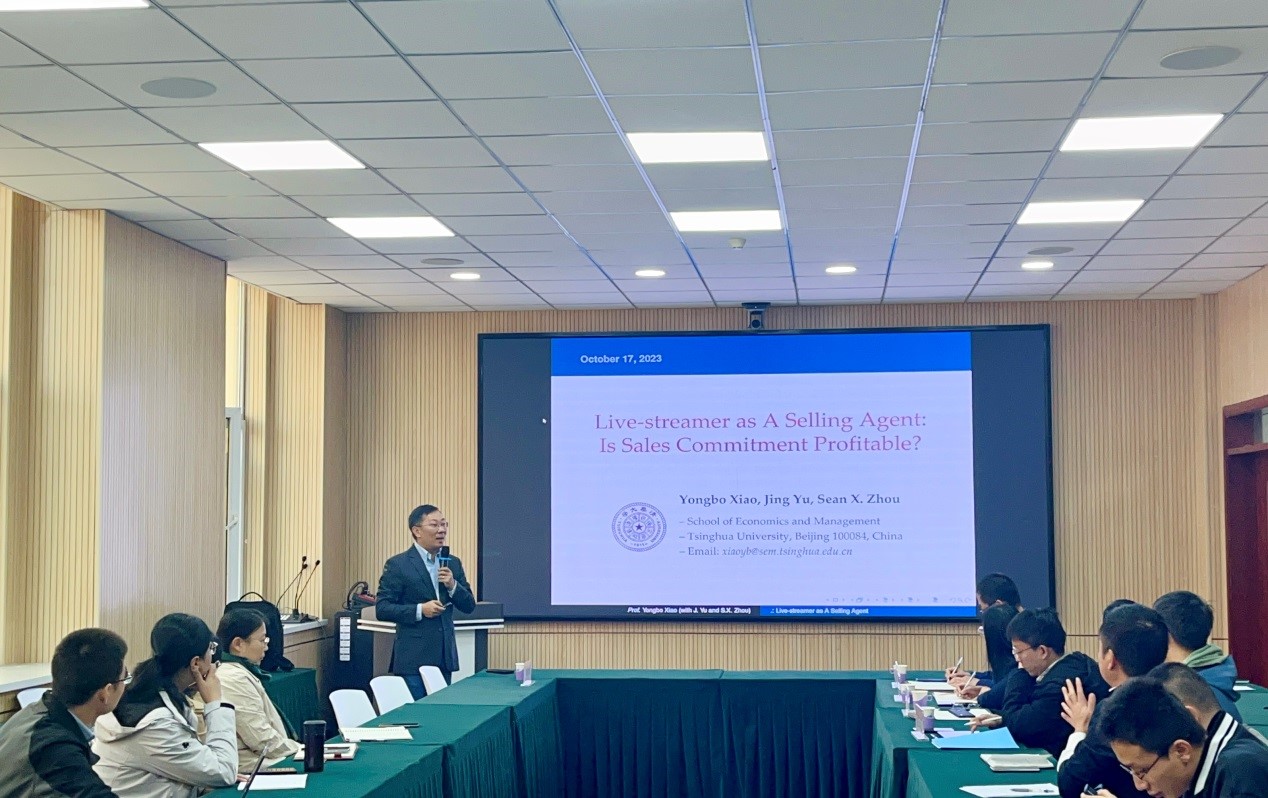 10月17日上午,清华大学肖勇波教授应邀来威尼斯9499登录入口进行学术交流,并作了题为“寻找有趣的运营与供应链管理研究话题”和“Live-streamer as A Selling Agent: Is Sales Commitment Profitable?”的学术报告。报告由威尼斯9499登录入口院长栗继祖主持,学院党委书记闫新、副院长陈怀超和姚西龙以及多名师生聆听了本次报告。