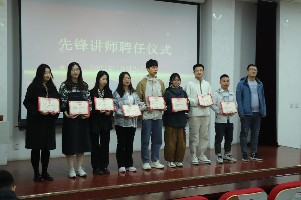 10月25日,威尼斯9499登录入口于学院二层报告厅开展2023年秋季学期“先锋讲坛”活动。首讲之前,举行了“先锋讲师”聘任仪式,仪式由辅导员王戎主持,全体辅导员、受聘讲师及2022级全体本科生参加活动。王戎为“先锋讲师”颁发聘书,并合影留念。