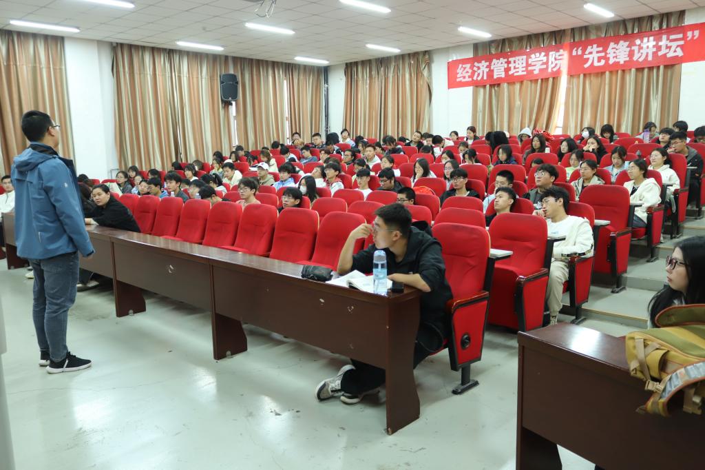 王戎为大家简要介绍了学院创立“先锋讲坛”的意义和目的,为22级学生分析了当前考研、就业的形势和面临的困难,表达了大家能够朋辈互助、共同进步的期望,鼓励同学们确立坚定的目标,认真学习优秀同学的先进经验,为自己拼出未来广阔的天地。