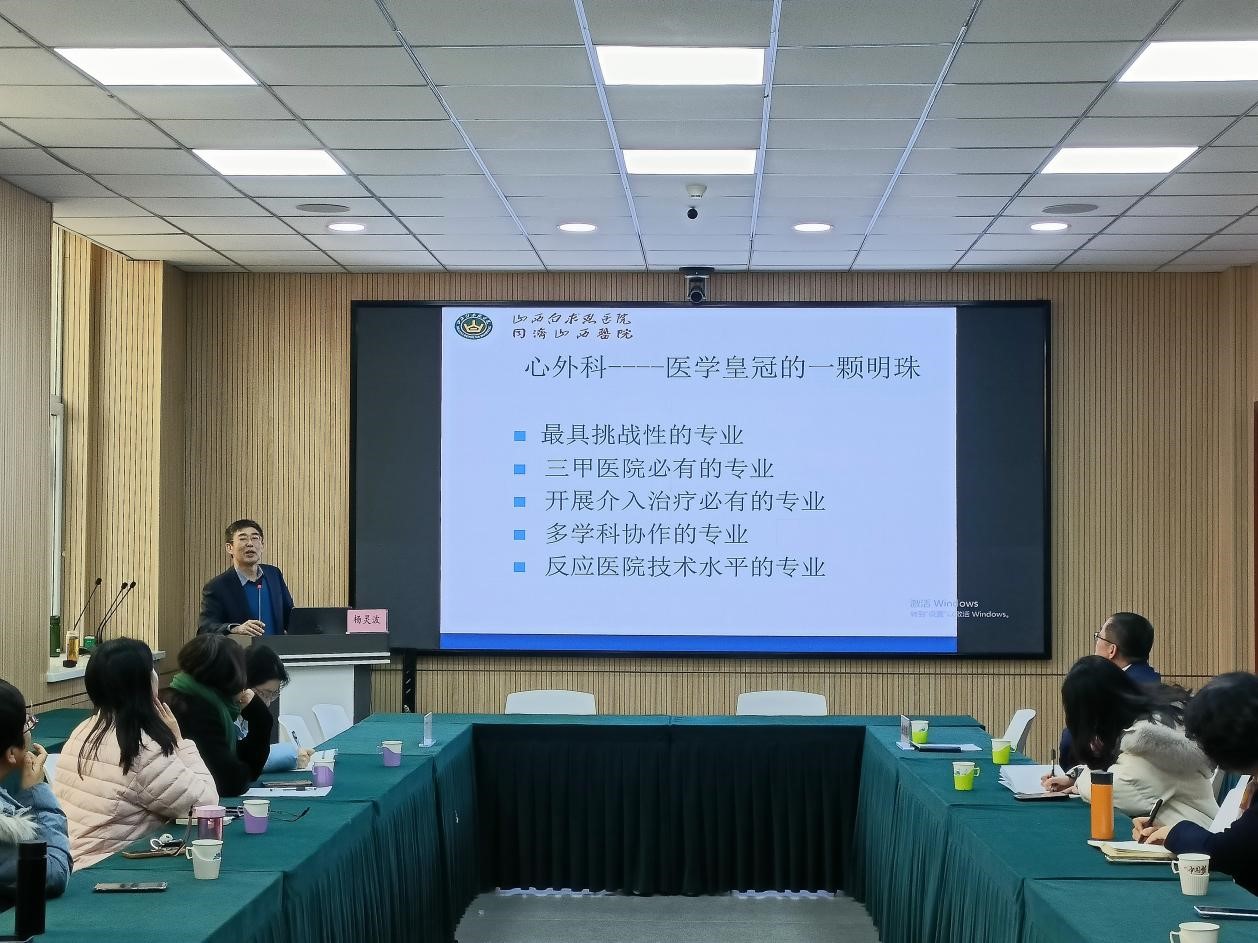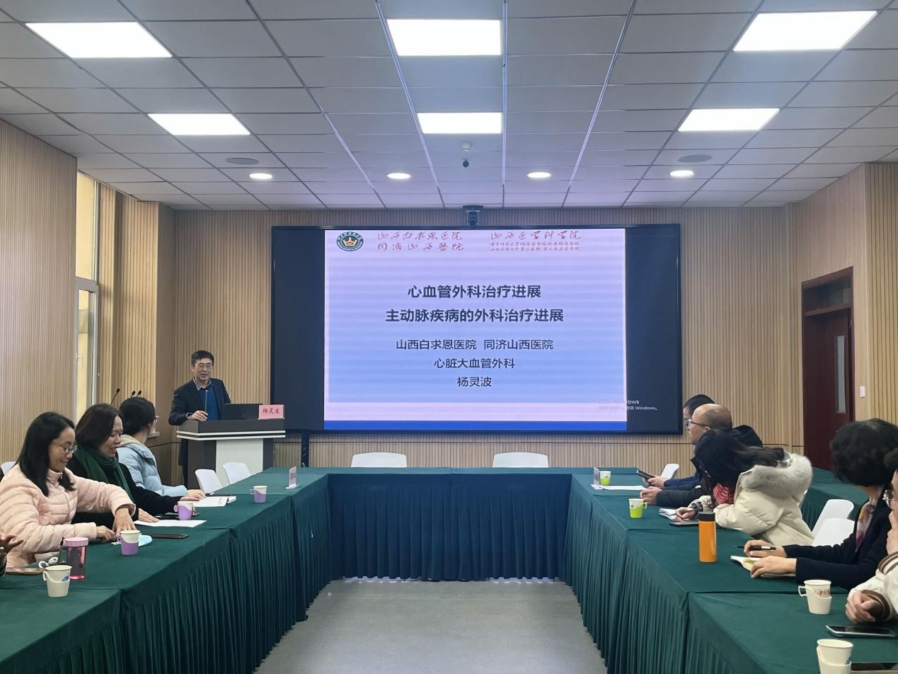 杨灵波主任是山西白求恩医院心脏大血管外科主任,主刀的手术近万台,经验丰富。在讲座中杨主任就心脏内科和外科的区别,心血管疾病外科治疗的发展史以及心血管疾病的种类和救治手段为在场的老师们进行了详细的阐述,刷新了老师们对心脏外科以及各种心脏疾病的认知,同时帮助老师们在以后的工作生活中能够更好的预防心血管疾病。