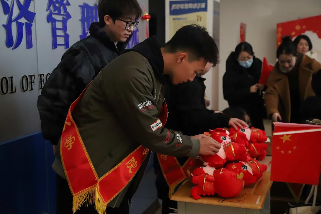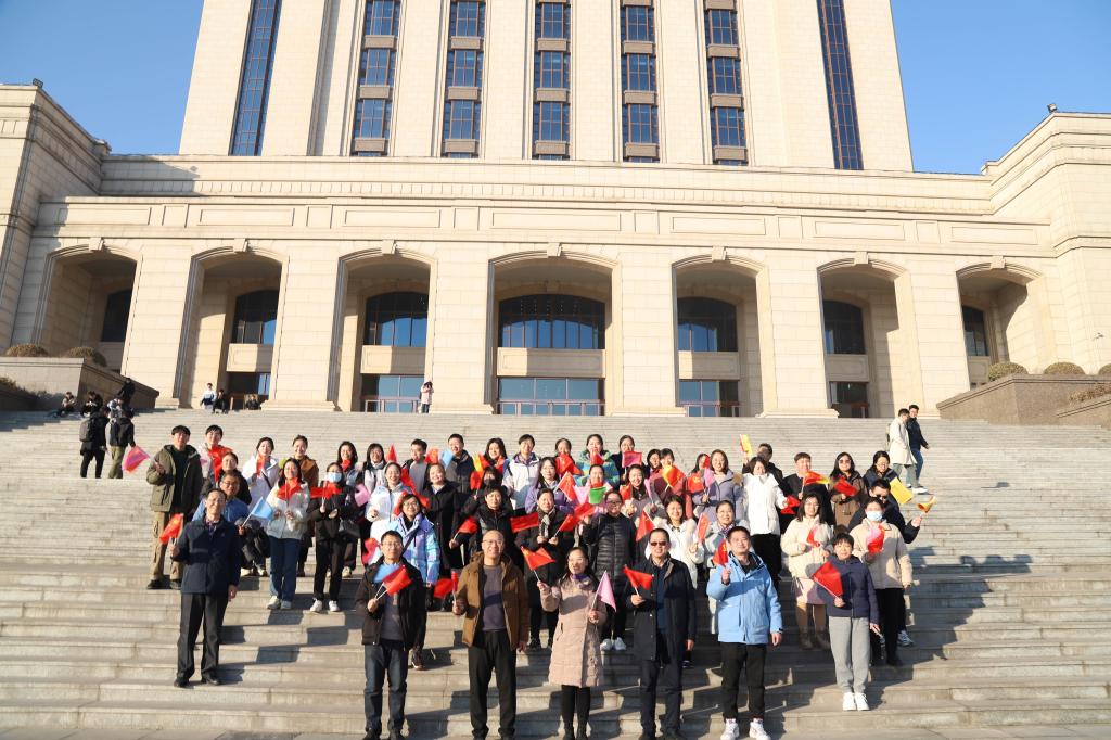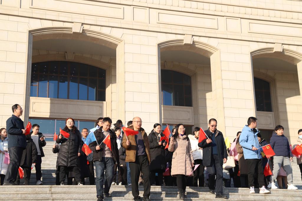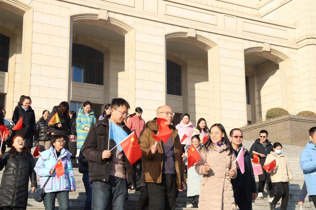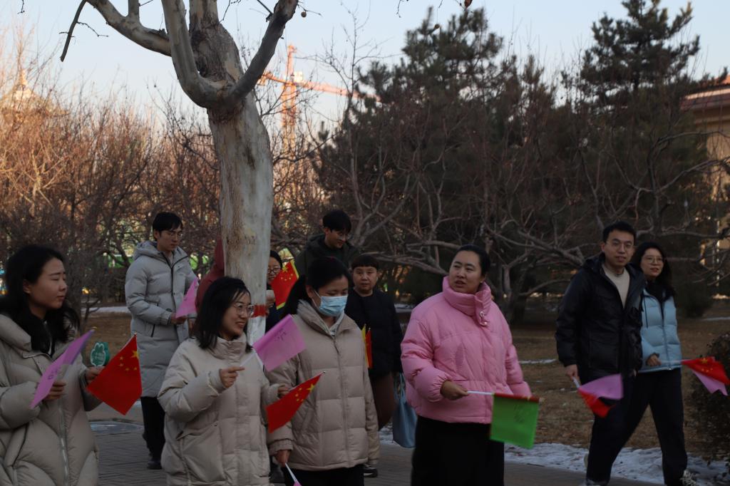 会后,全体教职工在经管学院楼前集合,手持国旗和签名彩旗,沿着学生活动中心、行政主楼、图书馆进行了健步走打卡活动,在打卡点拍摄了新春祝福视频,完成打卡的老师领取到盆栽纪念品,寓意永葆青春,勇往直前!
