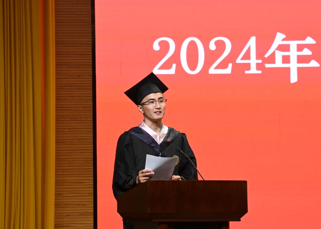 随着雄壮的国歌响起,毕业典礼正式拉开帷幕。栗继祖代表学院两千余名师生,向圆满完成学业的2024届全体毕业生,表示热烈的祝贺!向为同学们成长成才付出辛勤汗水的全体教职员工,表示衷心的感谢!他表示,“相信在你们的行囊中已经装满了理想、智慧和勇气,你们的身体里流淌着经管人不服输、敢打硬仗的血脉,坚信你们的学识和精神可以支撑你们去打造未来。”希望全体毕业生能够终身学习,广交益友,脚踏实地,逐梦力行。用勤勉实现人生价值,用奋斗获得人生幸福。