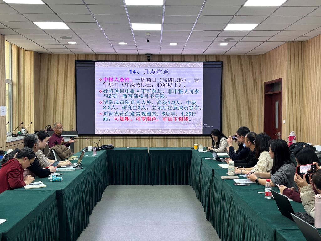 孙国强教授从国家社科基金项目与教育部人文社科项目申报书要点出发,围绕项目选题、开篇、学术与应用价值、国内外研究现状与趋势、重点难点、研究思路与进度、研究基础、核心观点、成果形式等板块,逐一展开细致讲解,并在讲解过程中辅以具体案例进行说明。同时,孙国强教授从申报人条件、团队成员、页面设计、字数限制、评审流程、结项等方面,指出两类项目申报书撰写过程中需要注意的规范与范式。最后,孙国强教授进行了现场答疑,并对具体项目申报书进行了针对性指导。