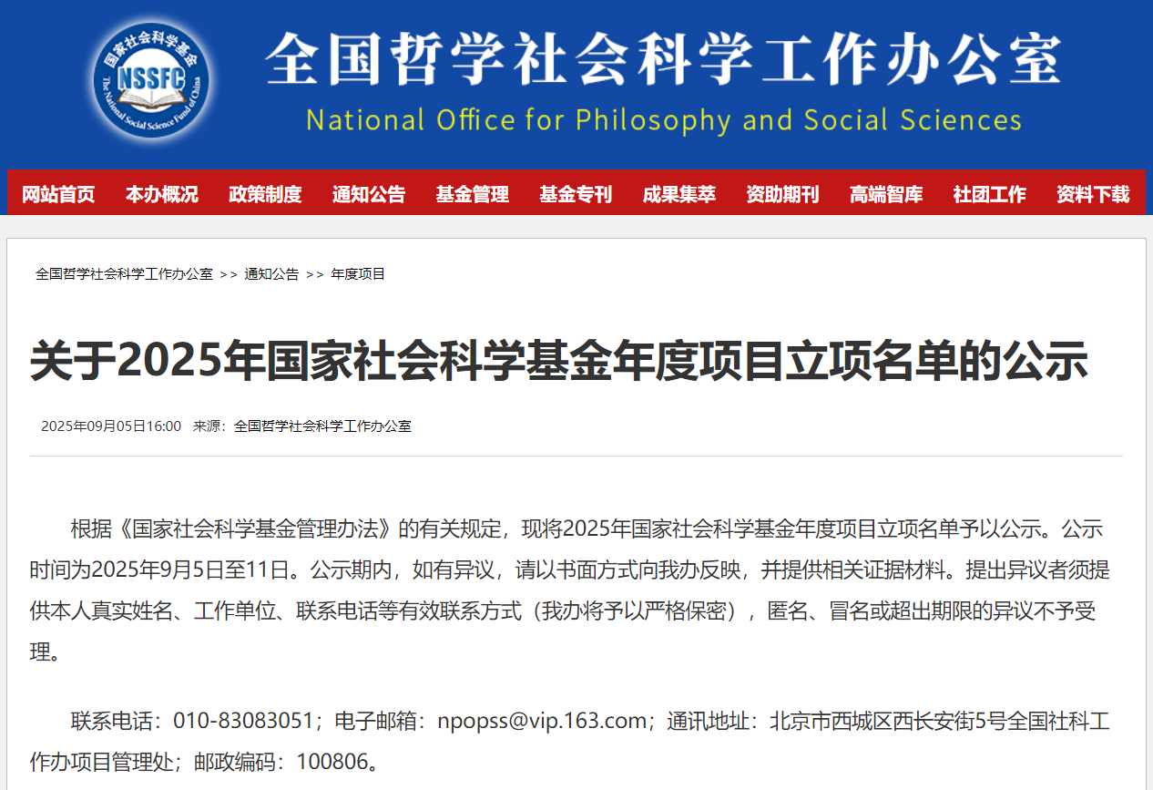 9月5日,全国哲学社会科学工作办公室发布了“关于2025年国家社会科学基金年度项目立项名单的公示”,威尼斯官网张国珍副教授申报项目获批(见下表),占全校立项总数的33.3%。