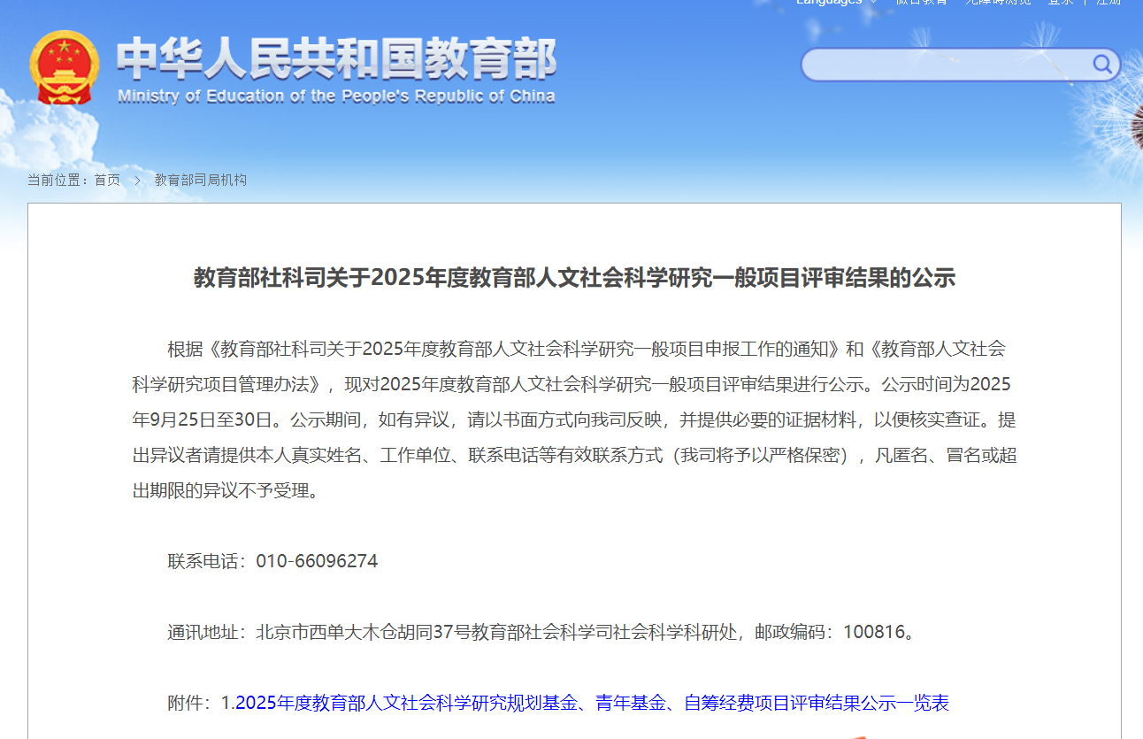 9月25日,教育部社会科学司发布了“关于2025年度高校思想政治理论课教师研究专项一般项目评审结果的公示”,威尼斯官网张美丽副教授和郭松波申报项目获批(见下表),占全校立项总数的50%。