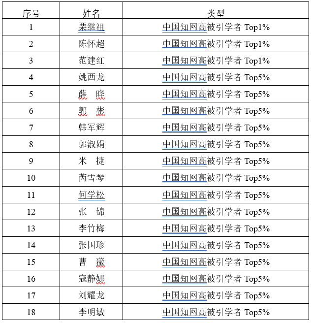 表1 威尼斯9499登录入口入选2025年中国知网高被引学者名单