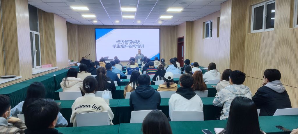 王戎就新闻的基本概念、学校新闻规范、学院新闻工作要求等三方面展开培训。他结合学校新闻实例和自身工作经验,为同学们讲解一份合格的新闻稿件所具备的要素,新闻稿件如何撰写及行文细节。强调新闻稿件的时效性和真实性。同时对各组织的新闻宣传工作提出了更高的要求,希望各组织宣传部门提高政治站位,重视宣传工作,在学生工作中学习本领,提升自我。