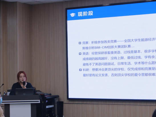 此次活动由国际经济与贸易、工程管理、会计学和物流管理专业成功保研的同学进行分享,从保研流程的梳理、申请材料的准备,到面试技巧的传授、科研经历的积累,同学们在交流中汲取经验,明确了目标,增强了信心。