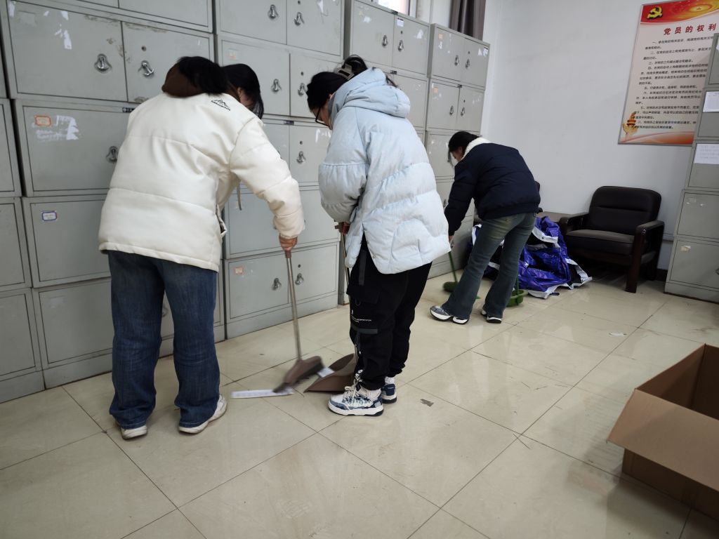 活动现场,同学们热情高涨,分工明确且协作默契,迅速投入到学院办公区域的清洁工作当中。参与资产整理工作的同学们一丝不苟,耐心地进行分类甄别,一一清点、整齐摆放。