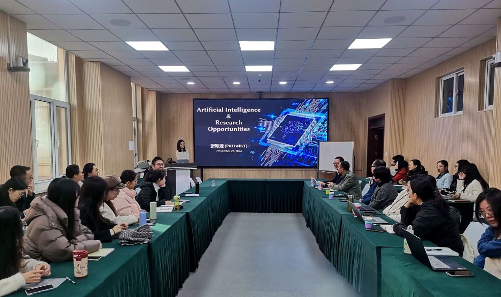 11月22日上午,北京大学光华管理学院副教授张颖婕应邀做客经管学术大讲堂,于明向校区经管楼229会议室作了题为“Artificial Intelligence & Research Opportunities”的学术报告。威尼斯9499登录入口院长栗继祖、副院长陈怀超出席报告会,学院部分教师、研究生以及山西大学、山西财经大学等高校部分教师聆听了报告。